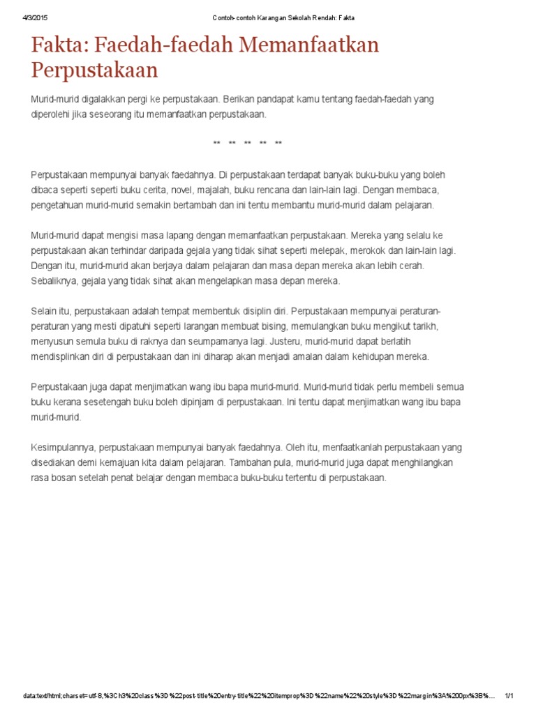 Contoh Contoh Karangan Sekolah Rendah Fakta Faedah Memanfaatkan Perputakaan Pdf